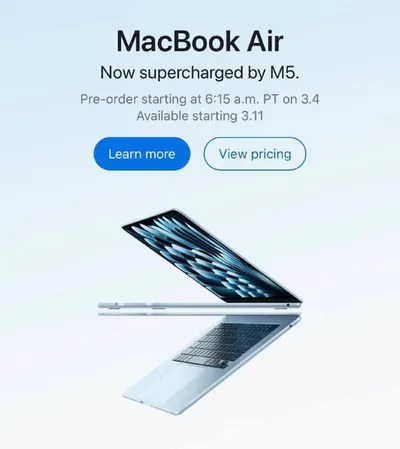 Сегодня Apple представила обновлённые MacBook: MacBook Air на чипе M5 Доступен в версиях 13″ и 15″. Получил 3-нм процессор M5 - до 4× быстрее M4 и до 9,5× быстрее M1 при работе с локальными LLM. В 2