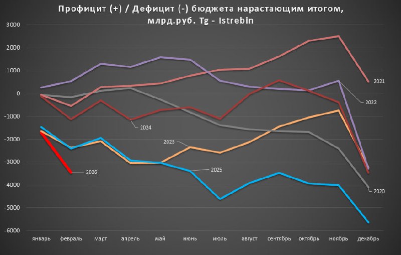 Бюджетная катастрофа РФ Дефицит бюджета по итогам 2 месяцев составил 3,449 трлн руб ( годовой план - 3,786 трлн ) За 2 месяца они практически выполнили годовой план по дефициту ( на 91% ) Итоги Февр