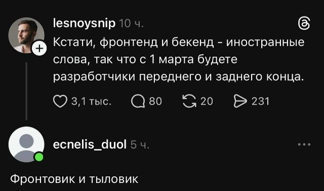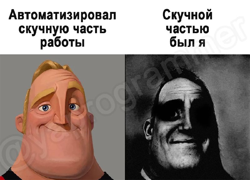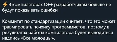 Юмор и развлеченияПрограммист без чувства юмора — робот. 15 минут смеха сожгут наросший за компьютером жирок. Ссылка: @Portal_v_IT Сотрудничество: @oleginc, @tatiana_inc Менеджер – @Spiral_Yuri Канал на бирже: telega.in/c/it_meme_tg РКН: clck.ru/3KHfGd