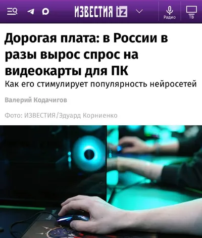 ⚡️ Россияне бросились скупать видеокарты — рост продаж уже 400%. Осенью 2025 года продажи комплектующих на маркетплейсах выросли на 124%. Покупатели опасаются нового роста цен на фоне подорожания ко