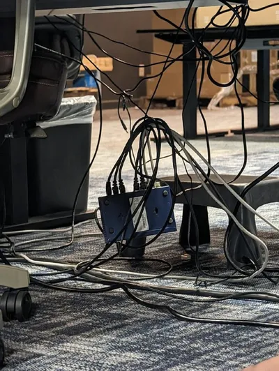 "Кабельменеджмент - не моя работа" ...А потом приходит уборщица с пылесосом и сметает всё. @itmemas