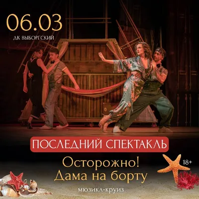 🛥 Разыгрываем 2 билета на мюзикл «Осторожно, дама на борту!» Выберем одного победителей и подарим два билета на мюзикл, 6 марта / ДК Выборгский Чтобы участвовать, выполните простые условия: 1. Под