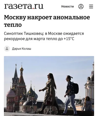 Хорошие новости: Москву накроет аномальное тепло, сообщают синоптики. Температура днём может подняться сразу до +15 градусов. При этом на выходных тоже будет тепло и солнечно. Так выглядит повод попр