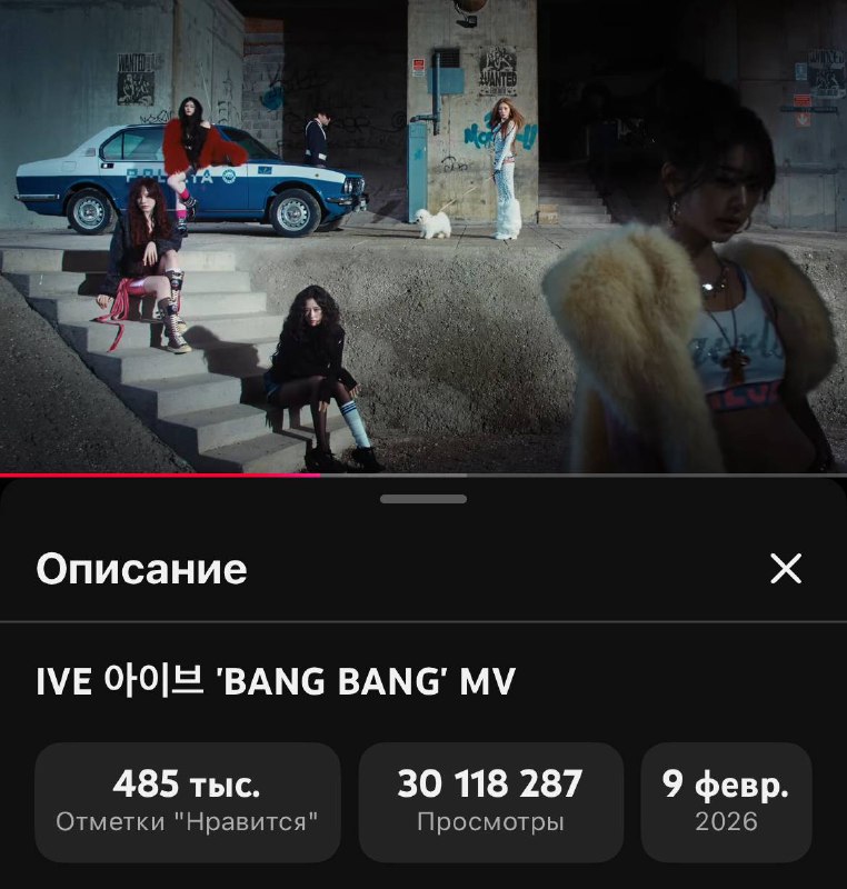 📬 › MV «BANG BANG» преодолел отметку в 30 миллионов просмотров и 450 тысяч лайков! #info | @ive_officials