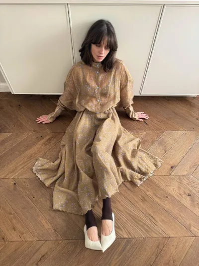 Романтический образ для весны — платье в богемном стиле с милым принтом. Даша соединила его с белыми лодочками и бежевым коротким тренчем. 🫥 Отдел заботы ívolga