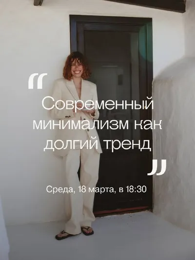 18 марта приглашаем вас в шоурум ívolga на лекцию и мастер-класс стилиста Лилии Саттаровой. Поговорим о современном прочтении стиля минимализм — без строгости и скуки, но с вниманием к деталям, факту