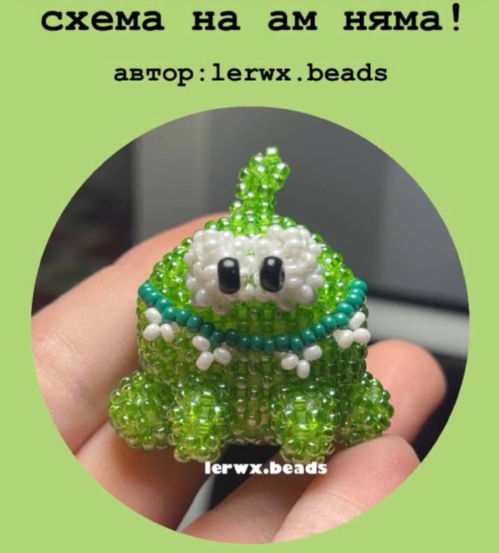 😍 Амигуруми Ам-Ням ~ Маленький, сладкий и невероятно милый персонаж ☘️ Тебе понадобится: 🟢зеленый бисер 🟢розовый или красный бисер 🟢чёрный бисер или бусинки для глаз 🟢леска 0,15–0,25 мм 🟢напол