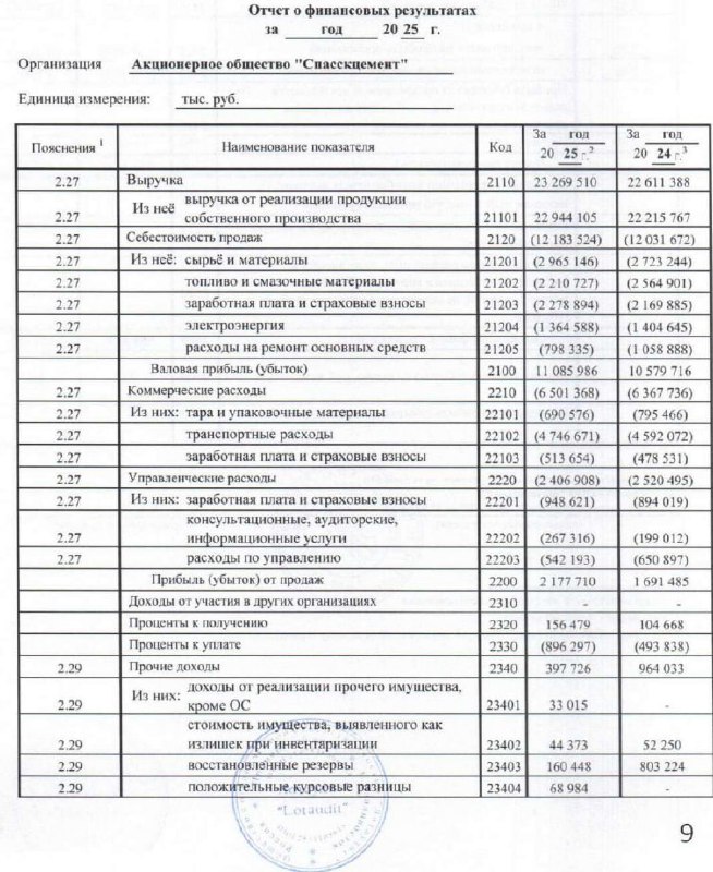 Цементные компании теряют прибыль. ⚫️ Смотрим бухгалтерскую отчетность АО «Спасскцемент», которая входит в ГК «Востокцемент». Компания фиксирует снижение чистой прибыли. ⚫️ В 2025 г. компания зараб