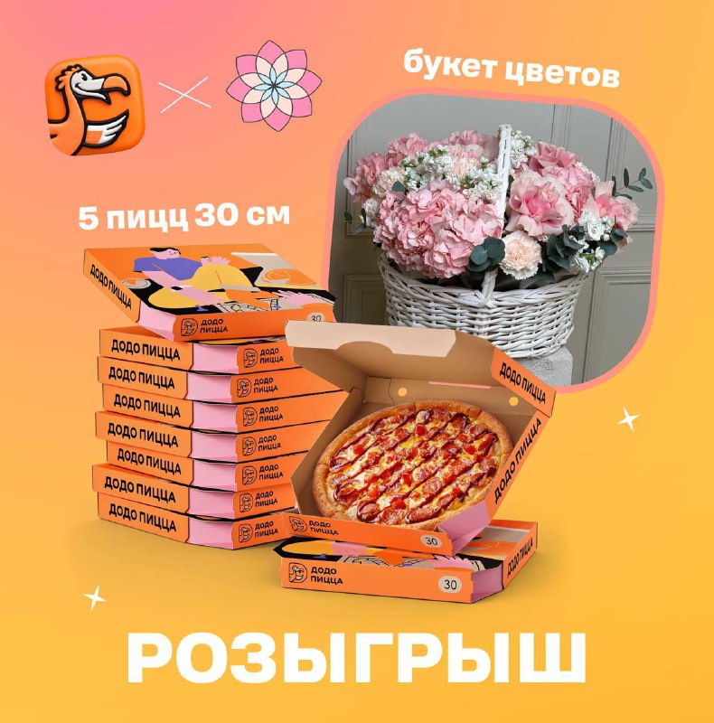 💐А у нас идет еще один розыгрыш. Завтра будут результаты! Корзина цветов и много пицц скоро надут своих счастливчиков! Проверьте, все ли условия выполнены😉