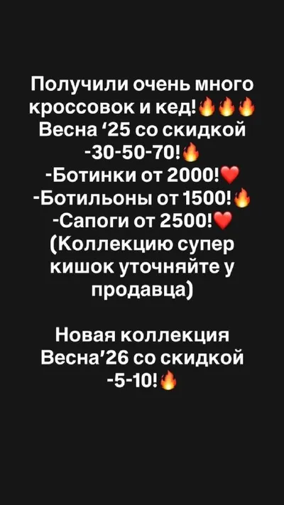 Доброго и хорошего дня!!! Получили очень много новинок!!!🔥🔥🔥(кроссовки,лоферы,туфли и многое другое!🔥 -Также риглашаем посетить нас и наши акции! -Ботинки по распродаже от 1500!🔥 -Сапоги от 250