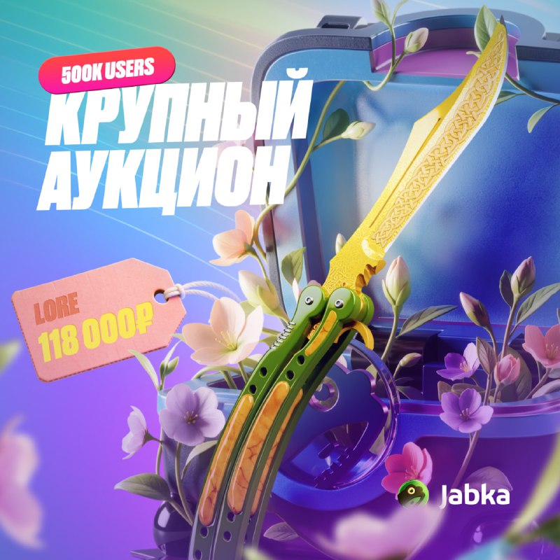 🧑⚖️ Аукцион на Нож-бабочку в честь 500к! Готовы принять участие в самом крупном Аукционе из тех, что проводили на Jabka? Правила участия: 🟡Переходи на страницу Аукциона 🟡Депай любую сумму с код