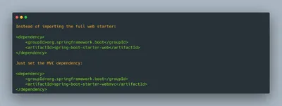 Spring Boot: избегай подключения полного spring-boot-starter-web, если тебе нужен только Spring MVC, потому что этот стартер подтягивает дополнительные компоненты, например встроенный сервер, которые