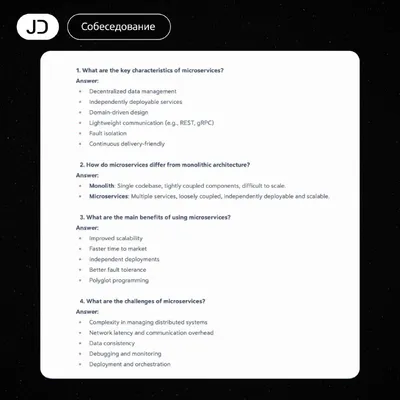 ⌨️ Микросервисы: подборка вопросов с собеседования 1. Каковы ключевые характеристики микросервисов? - Децентрализованное управление данными - Сервисы развёртываются независимо друг от друга - Проекти