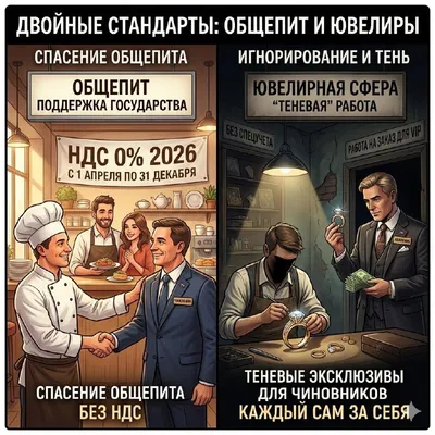 🍽 Общепит спасают, а ювелиры уходят в тень: о двойных стандартах и профессиональной солидарности На фоне массового закрытия кафе и ресторанов Минфин внезапно расщедрился: ведомство предложило освобо