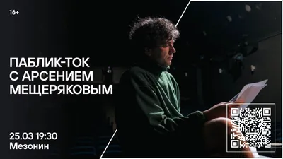 ✅ Паблик-ток с Арсением Мещеряковым ➡️ 25 марта в 19:30 Арсений Мещеряков — ученик Андрея Могучего, один из ярких представителей молодой режиссуры, работающий в небытовой, экспрессивной эстетике. По