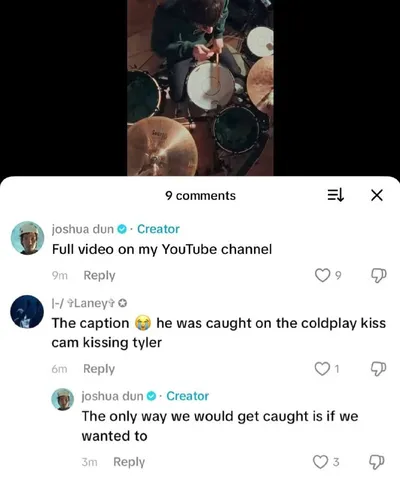 Там в тиктоке произошло ТАКОЕ, что Джош поудалял свои комментарии. Ф: Описание к видео! 😭 его застукали на coldplay kiss cam, когда он целовался с Тайлером. Джош: Нас могли бы поймать только в том