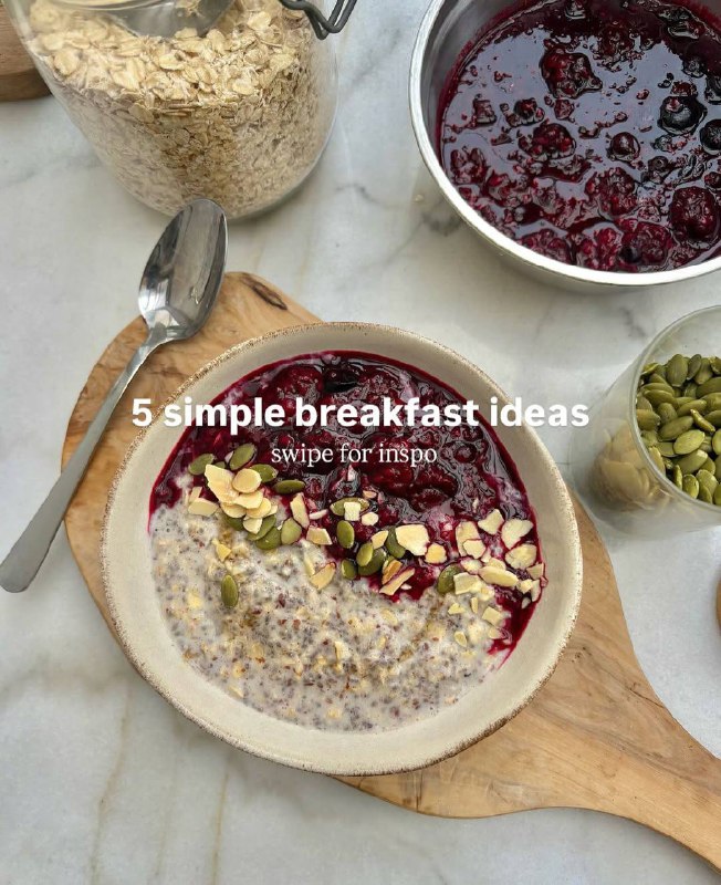 5 простых идей для завтрака 🫐🍳 сохраните для вдохновения на этой неделе!