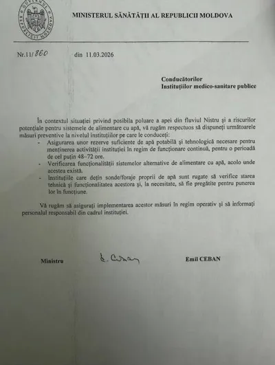 Медучреждения Молдовы срочно переводят в режим повышенной готовности из-за риска загрязнения воды в Днестре Министр здравоохранения Эмиль Чебан распорядился, чтобы руководители всех государственных м