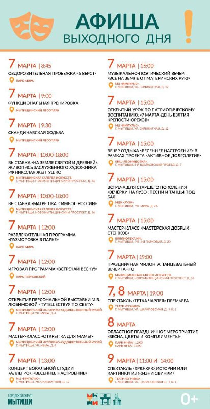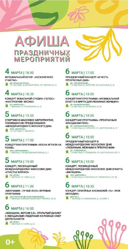 ⚪️ Первая неделя марта – это весна и предпраздничное настроение Мытищинцы готовятся поздравить своих бабушек, мам, жен, дочерей, коллег с Международным женским днем. В наших учреждениях пройдут ко