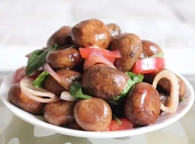 🍶ШАМПИНЬОНЫ В СОЕВОМ СОУСЕ Рецепт Шампиньоны 500 г (лучше использовать небольшие) Соевый соус 50 мл Вода 50 мл Чеснок по вкусу Репчатый лук 1 шт Лук и чеснок мелко порезать. Грибы тщательно помыть.