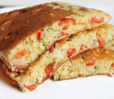 🍕БЛИНЧИК-ПИЦЦА ЗА 15 МИНУТ 📌КБЖУ на 100 г 192/14/7/16 Рецепт Рисовая мука 100 г Мягкий творог 180 г Яйца 3 шт Сыр 80г (у меня было 50/50 моцарелла и маасдам) Помидор 80 г Куриное филе отварное 10