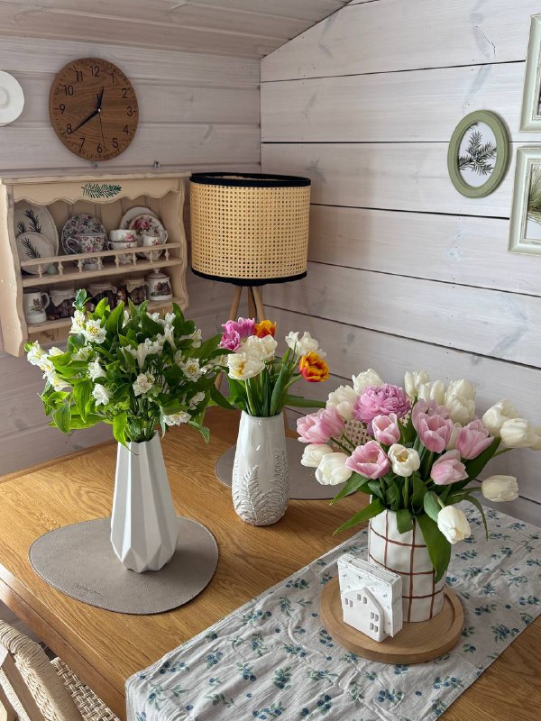 Какая же весенне-праздничная атмосфера теперь у нас дома! (В это время за окном у нас бесконечный снегопад) Очень люблю цветы, а тут в честь дня рождения ещё и столько красивых букетов 🌷 +1000% к