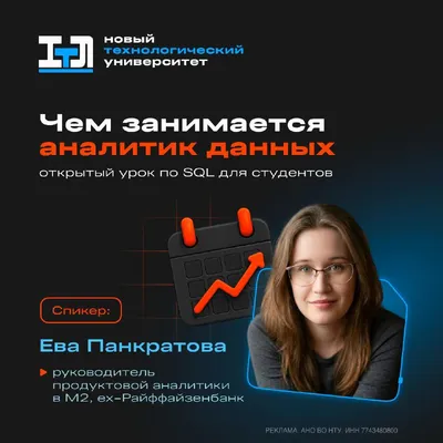 Чем занимается аналитик данных — открытый урок по SQL для студентов 🎓 Приглашаем вас на открытый онлайн-урок Нового технологического университета, где вы увидите, как аналитики работают с данными в