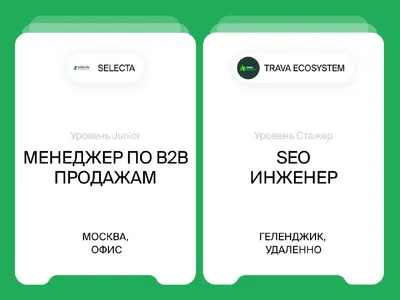 КарьераВакансии и стажировки в IT & Digital 💚 Разместить вакансию https://www.vseti.app/b2b Вакансии https://www.vseti.app Менторы https://www.vseti.app/mentors Поддержка @vsetisupport_bot Реклама @irademidovna Регистрация в РКН https://clck.ru/3PHSFk