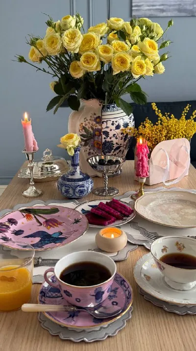 — традиционное выходное 🩷 такую милую мимозу вчера подарила мама мужа, аромат весны😍 за кадром оладьи и омлет со страчателой и шампиньонами {да, мы очень поздно завтракаем😂🐱} #just_сервировка