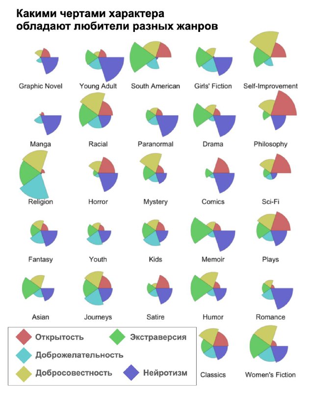 Книги, которые вам нравятся, могут кое-что рассказать о вашей личности. • Детективы и книги по саморазвитию чаще выбирают люди с высокой сознательностью и организованностью («добросовестность» в Боль