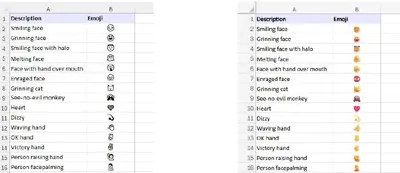 Эмодзи в настольной версии Excel по умолчанию отображаются черно-белыми. В онлайн‑версии — полноцветными, как в мессенджерах. Это особенность самого приложения: классический Excel использует монохромн
