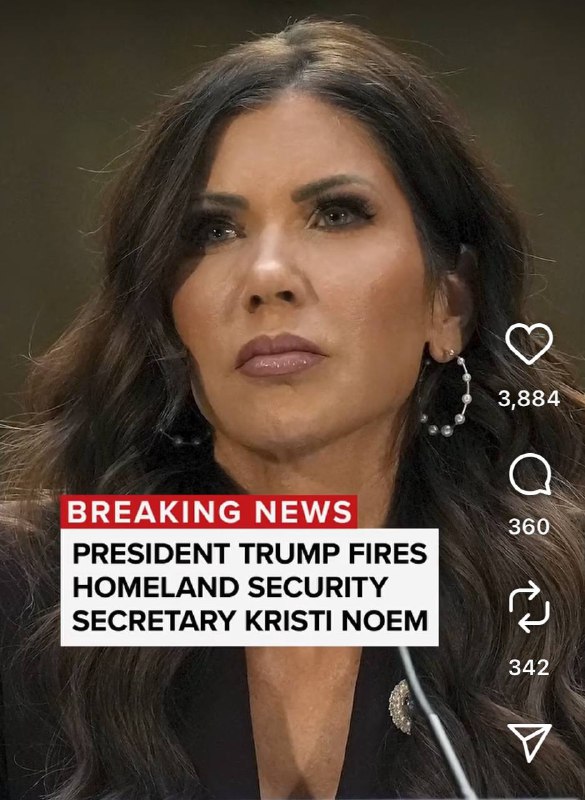 Трамп уволил главу департамента внутренней безопасности Кристи Ноэм - у нас бы это назвали победой гражданского общества. Из всех министров Трампа Кристи отличалась невиданным уровнем халатности. О