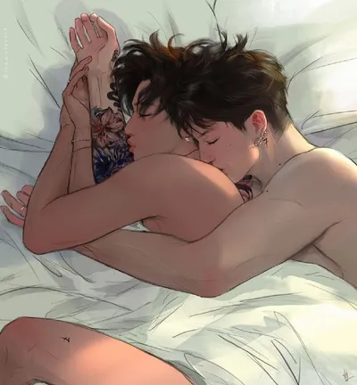 Утро после брачной ночи Тёплое утро начинается с тихого шороха тяжёлого одеяла. Лучи солнца освещают обнажённую кожу тел, что желанно прижимаются друг к другу. Чонгук льнёт ближе к худой спине, впло