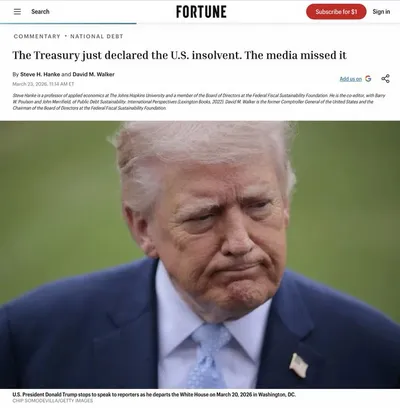 > FORTUNE: «Правительство США неплатежеспособно» > Консолидированная финансовая отчетность Министерства финансов за 2025 финансовый год, незаметно опубликованная на прошлой неделе, когда американцы б
