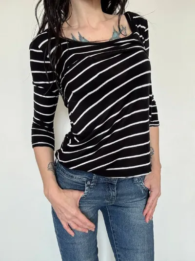 Полосатый лонг Полосатый приталенный лонгслив из легкого и приятного материала. Подойдет на Xs/S (больше фото в комментариях) Price: 1400₽ 💸 Для заказа > @julyitsme канал с наличием #fabryc_н