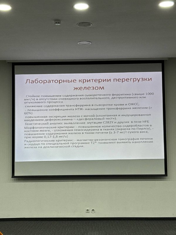 Сегодня на мастер-классе КПК в Иркутске гематолог Елена Юрьевна Виноградова разбирала лабораторные критерии перегрузки железом: 🔘Стойкое повышение содержания сывороточного ферритина (свыше 1000 м