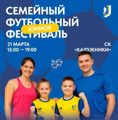 ⚽ Семейный футбольный фестиваль от футбольной школы «Юниор» ПРИГЛАШАЕМ ВСЕХ🔥 📅 21 марта 🕒 15:00–19:00 📍 Спортивный комплекс «Калужники» Приходи всей семьёй! Мамы, папы, бабушки, дедушки, братья