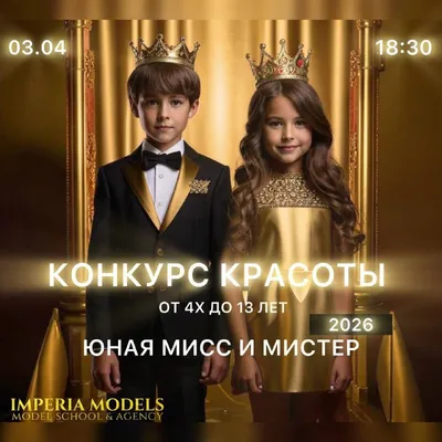 ✨Конкурс красоты «Юная Мисс и Мистер 2026» в ИКЦ 3 апреля в 18:30. Конкурс для детей от 4 до 17 лет. Участники смогут проявить себя на сцене и стать частью этого яркого события Принять участие може