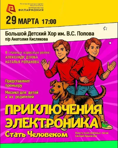 ✨Мюзикл «Приключения Электроника. Стать человеком» в Калужской филармонии - 29 марта в 17:00. Большой детский хор им. В. С. Попова (художественный руководитель — заслуженный артист России Анатолий К