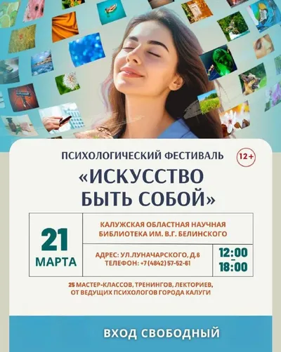 ✨Психологический фестиваль «Искусство быть собой» в Библиотеке им. В. Г. Белинского - 21 марта с 12:00 до 18:00, бесплатно. Участники посетят 25 мастер-классов, тренингов и лекториев от ведущих псих