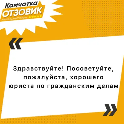 В редакцию Камчатского «Отзовика» поступил вопрос от подписчицы. 📋 #юристы ❓ Есть хороший специалист на примете? ———————————— Есть чем поделиться? Пришлите в "Камчатский Отзовик" ✅