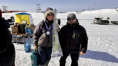 Алла Солодикова из Анавгая покорила козыревский лёд 🎣Пока краевая столица затянута серым небом, в Козыревске под ярким весенним солнцем прошли соревнования по подлёдному лову «Золотая рыбка — 2026».