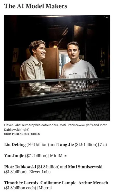 Как богатеют фаундеры AI-стартапов✍️ На днях глобальный Forbes опубликовал новый список миллиардеров, и в нем аж 45 новых AI-миллиардеров. Даже компании с минимальной выручкой — не говоря уже о приб