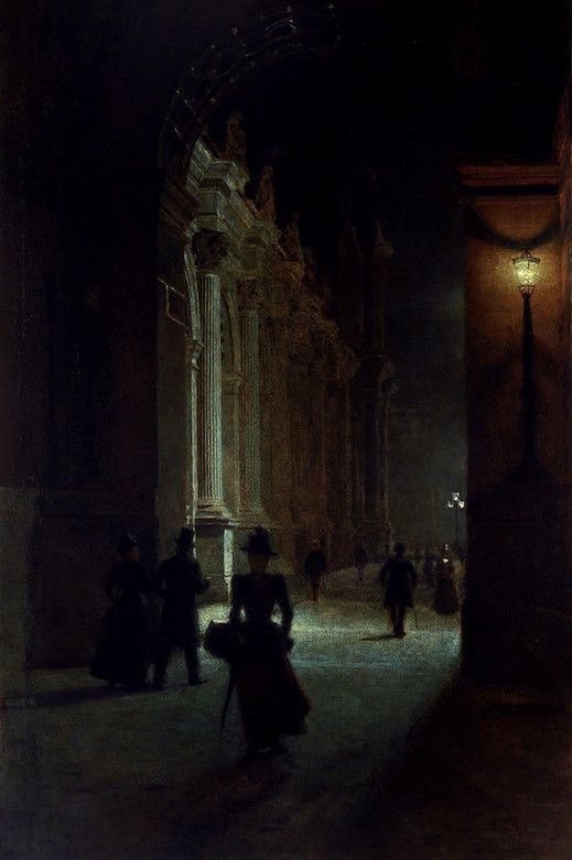 "Лувр ночью", 1892 Художник / Александр Герымский (1850-1901) 🫥🫥🫥 Bohemia of Postmodernism Холст, масло 119×75 см 🏮 Картина передает атмосферу ночного Парижа конца XIX века. Мерцание фонар