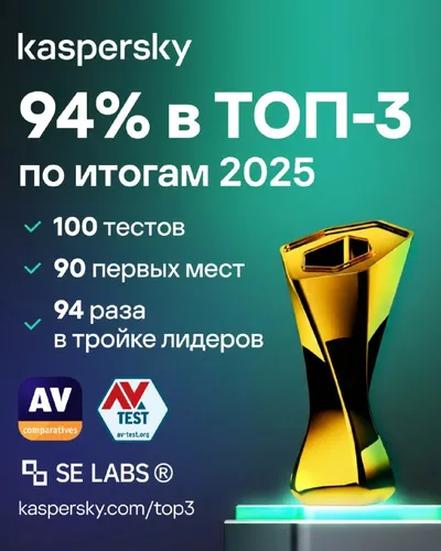 🏆90 первых мест из 100! В 2025 году «Лаборатория Касперского» приняла участие в 100 независимых международных тестах и обзорах: наши продукты 90 раз заняли первые места и 94 раза вошли в тройку лиде