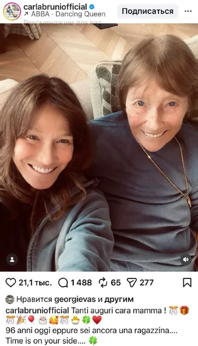 Карла Бруни в запрсети трогательно поздравила маму с 96-летием - написала, что время на ее стороне и, что она все еще девочка ) Саундтрек Dancing. Queen ♥️