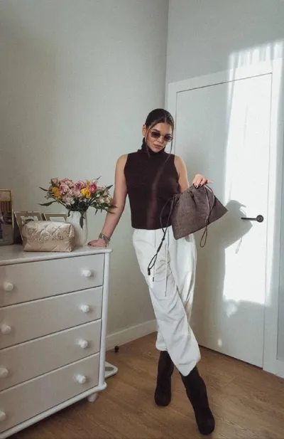 как же мне нравится этот образ, оставляю вам все явки и пароли…🥥 ▪️брюки — wb 527254865 ▪️топ — lamoda MP002XW0UM2A ▪️ботильоны — wb 678986697 ▪️сумка — wb 481819917 ▪️очки — dsquared если было пол