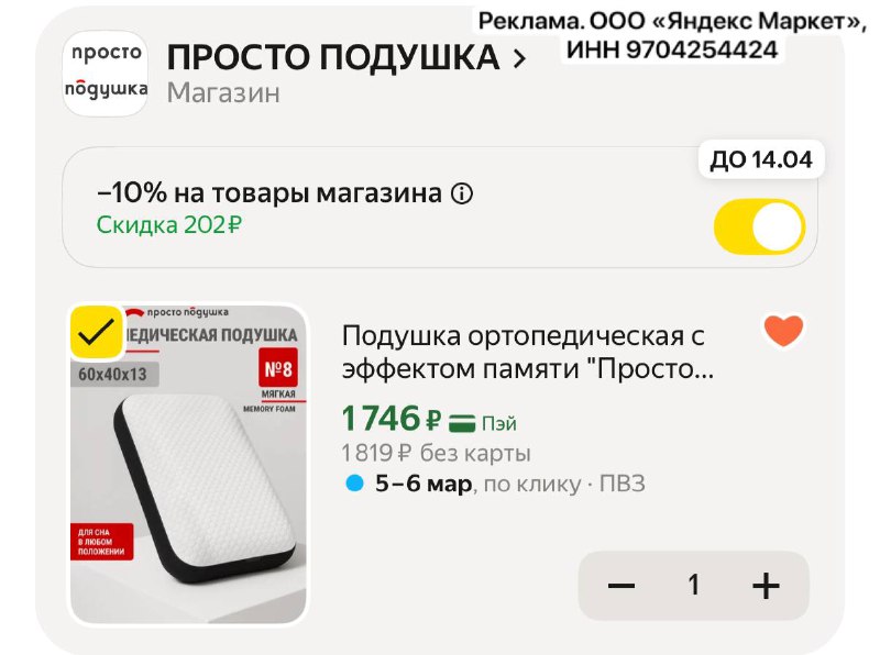Срочно!! Доп скидка на ту самую подушку!!! 80 тысяч заказов! Отличные отзывы🔥 Успеваем, разбирают их быстро!! https://market.yandex.ru/cc/8tzwgs?erid=5jtCeReNx12oajxTXp6vPH3 Берем на подарок себе и