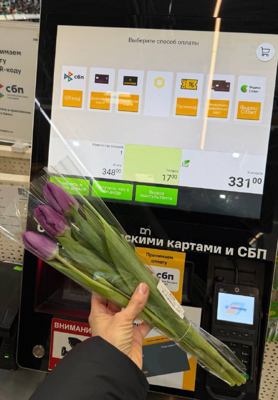5 тюльпанов вышло за 331₽ Это по 66₽ за 1 шт Лемано Про Вводим промокод PROMORNSGB на кассе самообслуживания Реклама. Информация о рекламодателе по ссылке