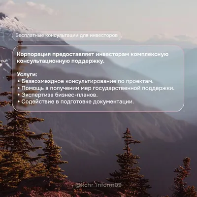 🤩 Бесплатные консультации для инвесторов в КЧР Корпорация развития Карачаево-Черкесии предлагает комплексную поддержку предпринимателям и инвесторам на безвозмездной основе. Услуги: 🤩 Консультиров